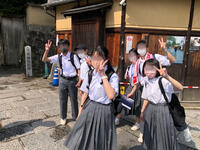 午後も班別行動頑張っている様子です。先生たちに会うと嬉しそうな生徒たち。そしてホッとした表情が印象的です。先生たちも上中生を見かけると、嬉しいです。