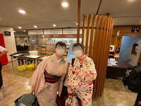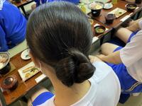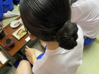朝食の様子です。着物に向け、髪をセットしている人もいます!