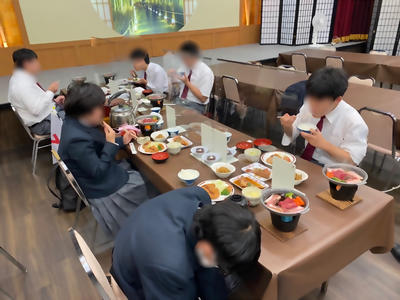 生徒たちはクラス別行動を終えて、昼食会場に集まって来ました。