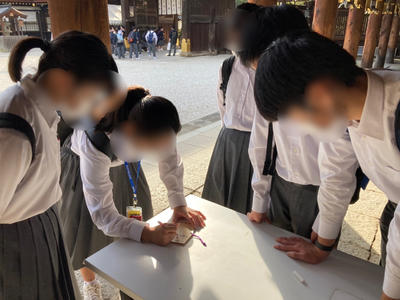 教科書で見た寺社仏閣に感動している生徒もたくさんいます。